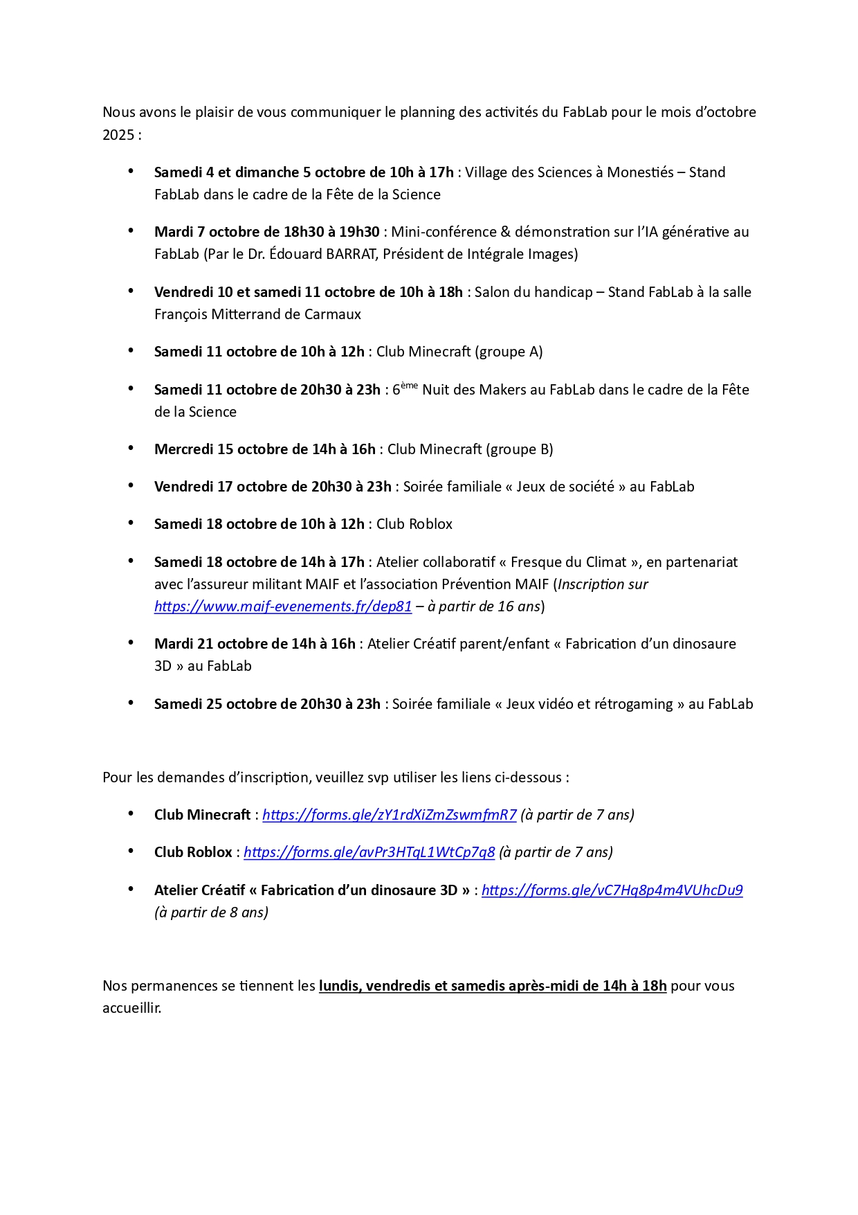 Pour nous trouver, connaître nos horaires, participer à nos actions et proposer/contribuer à nos projets, pour adhérer...